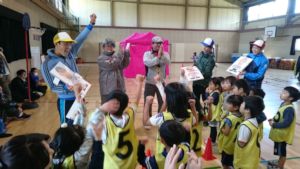 朝から地震車の体験や、消防車などに乗るなど防災にまつわる体験をしたお子さん達に、