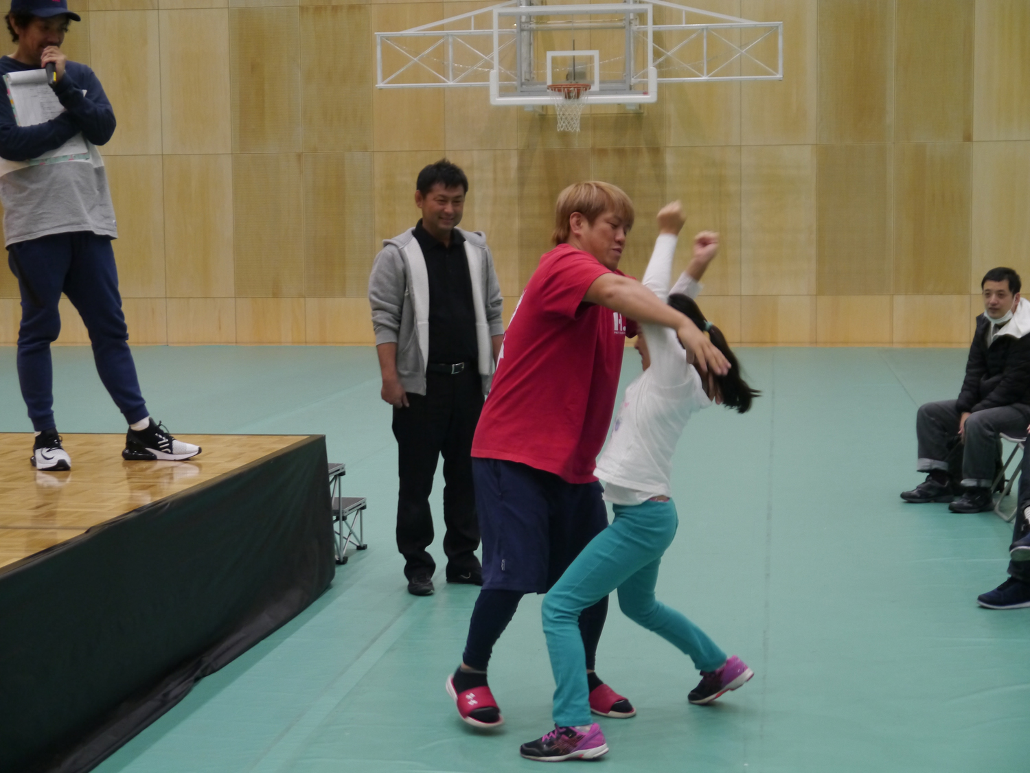 小さなお子さんも、屈強なアスリートから逃げることが出来、会場から拍手も!!!
