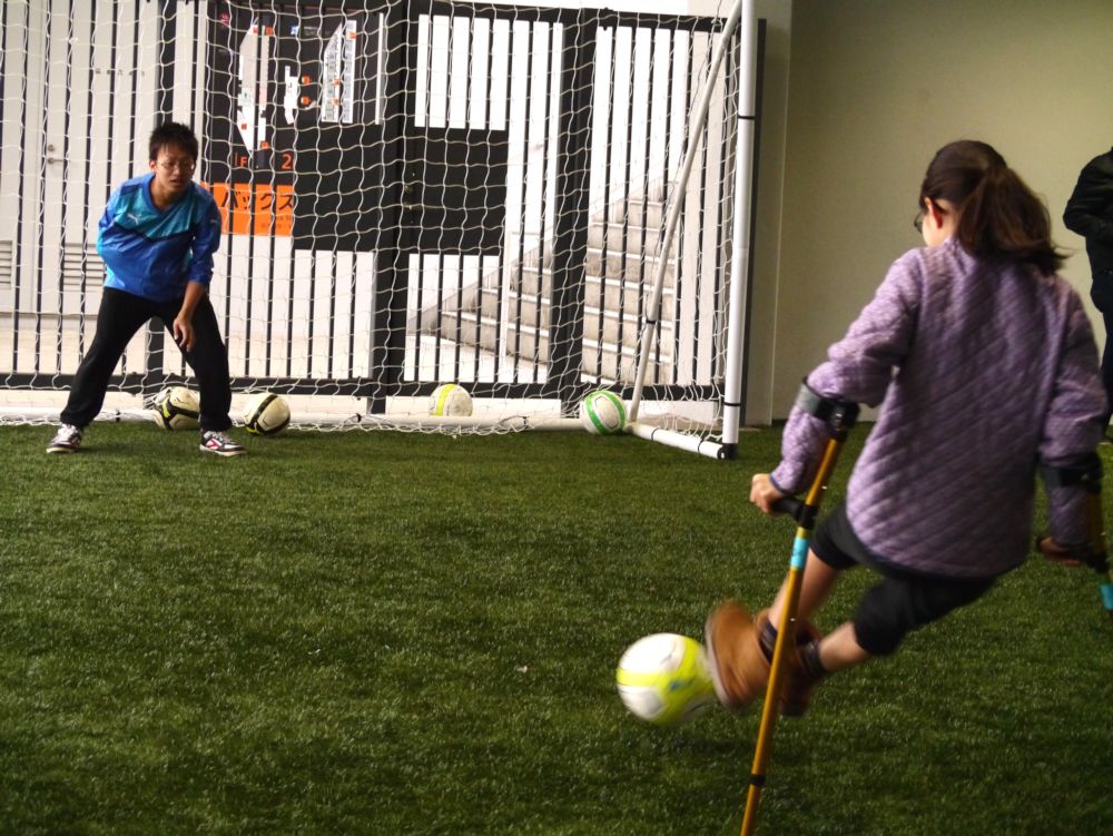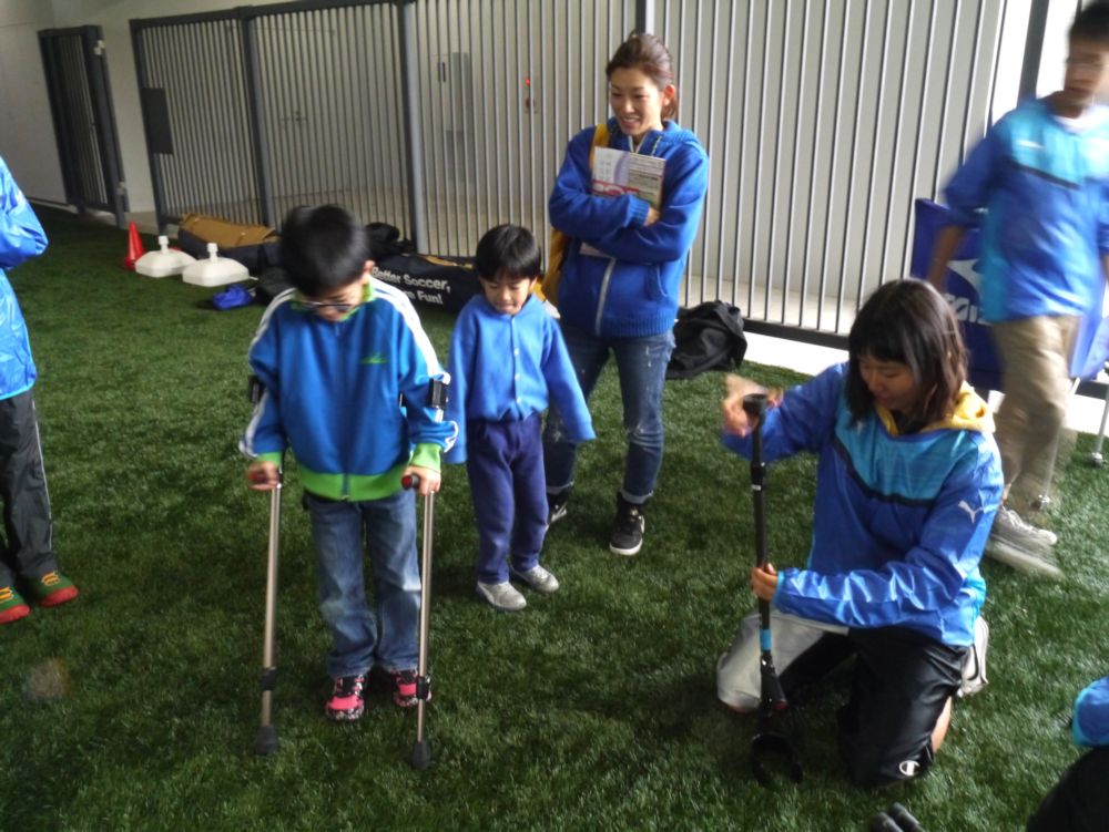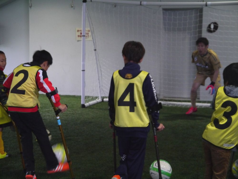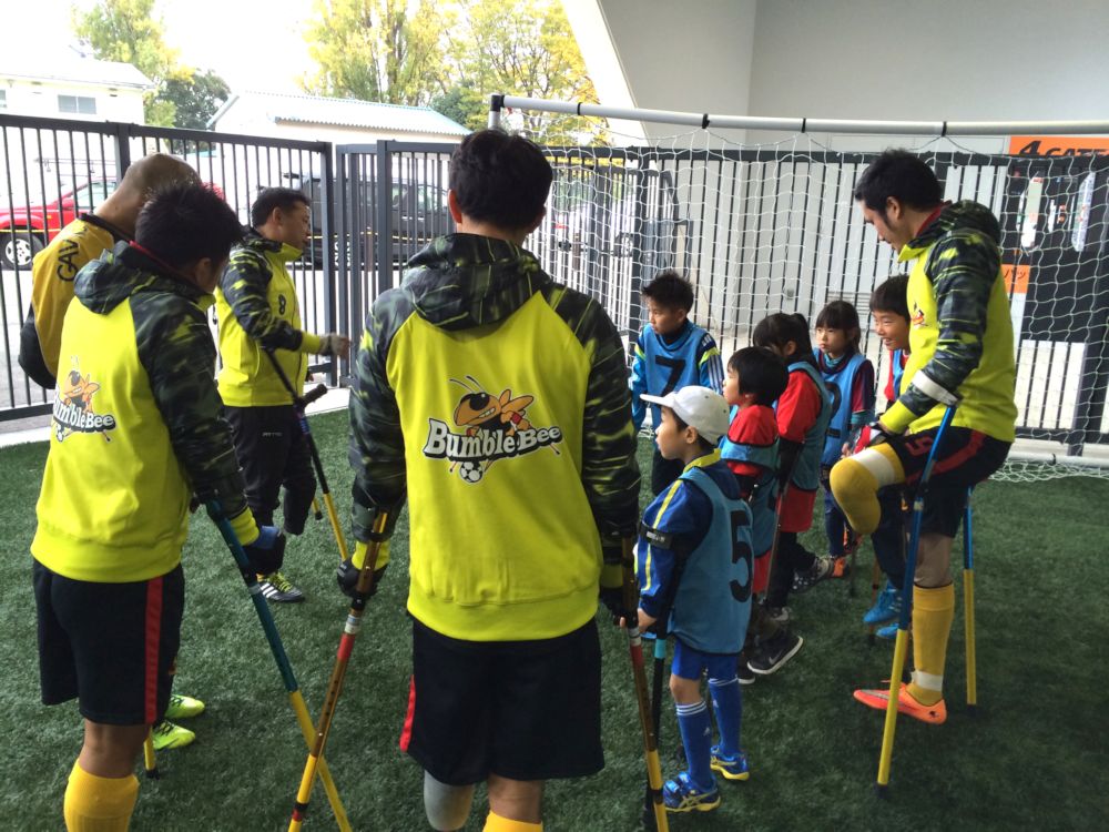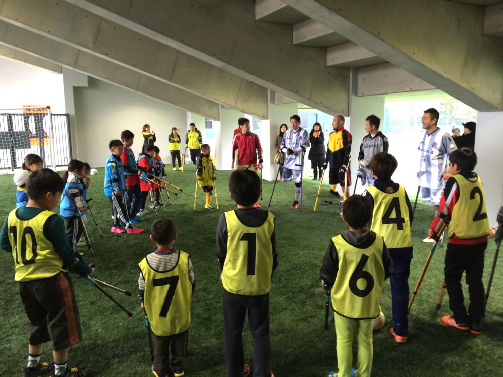 北海道・広島・千葉の選手から直接指導を受けアンプティサッカー教室を行いました。