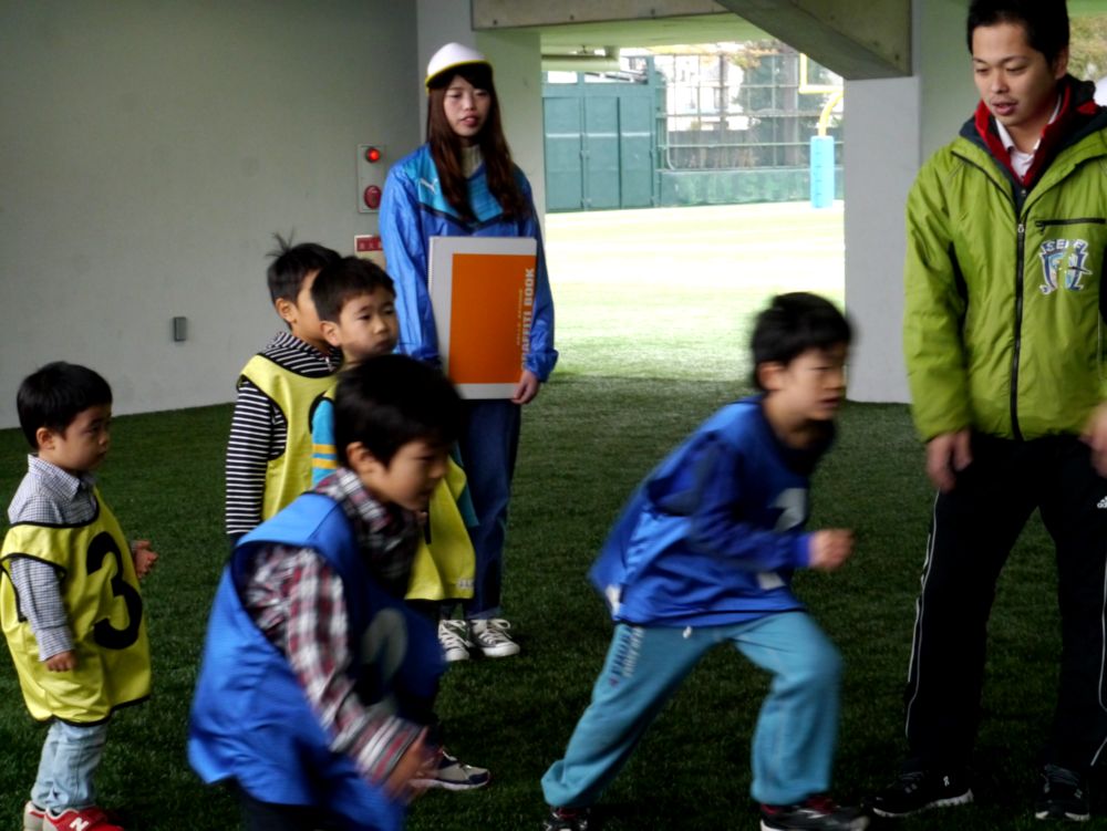 「走る」「タックル」の体験をしていただきました。
