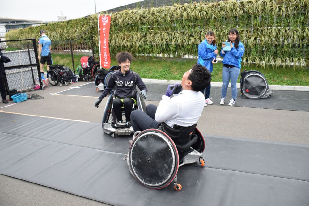 激しい車椅子スポーツを体感し、障害者スポーツの面白さを感じていただけました。