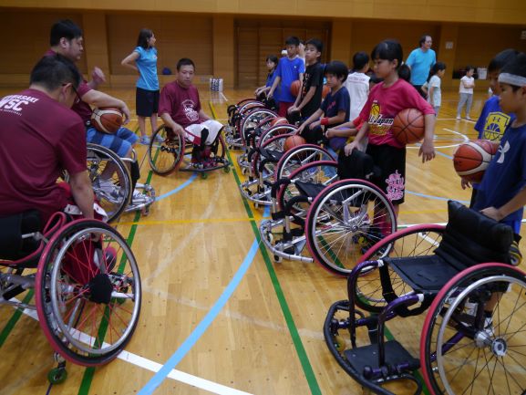 車椅子バスケを指導してくれたのは「川崎WSC」の本多選手・中嶋選手・斉藤選手とスタッフの皆さん。